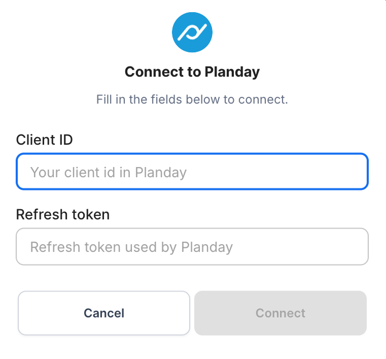 The following window pops up. Here you select Planday.