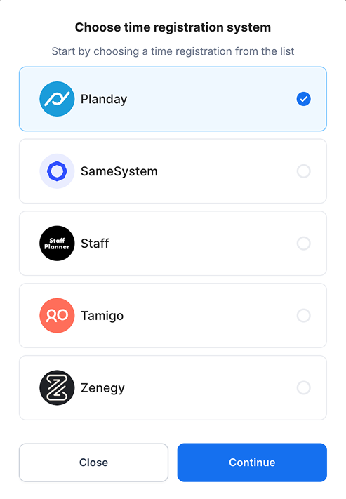 The following window pops up. Here you select Planday.